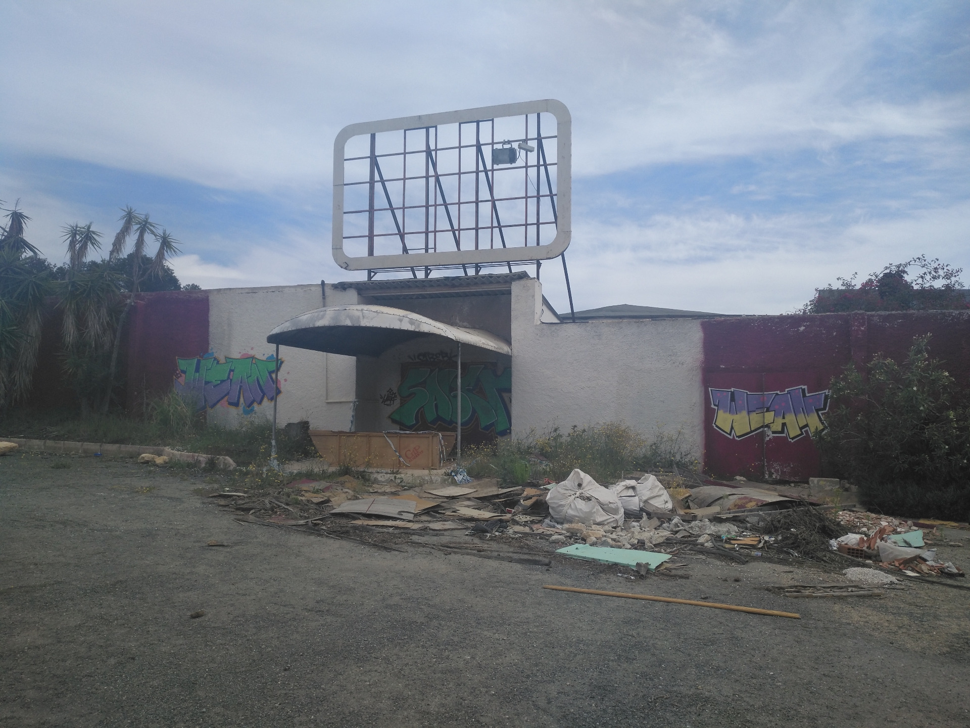 Destrozado, pintado y de alguna manera aun aguanta en pie, al menos es lo que podemos observar desde fuera, en la parte de lo que era el parking, el cual a sido testigo de todas esas noches de locura.